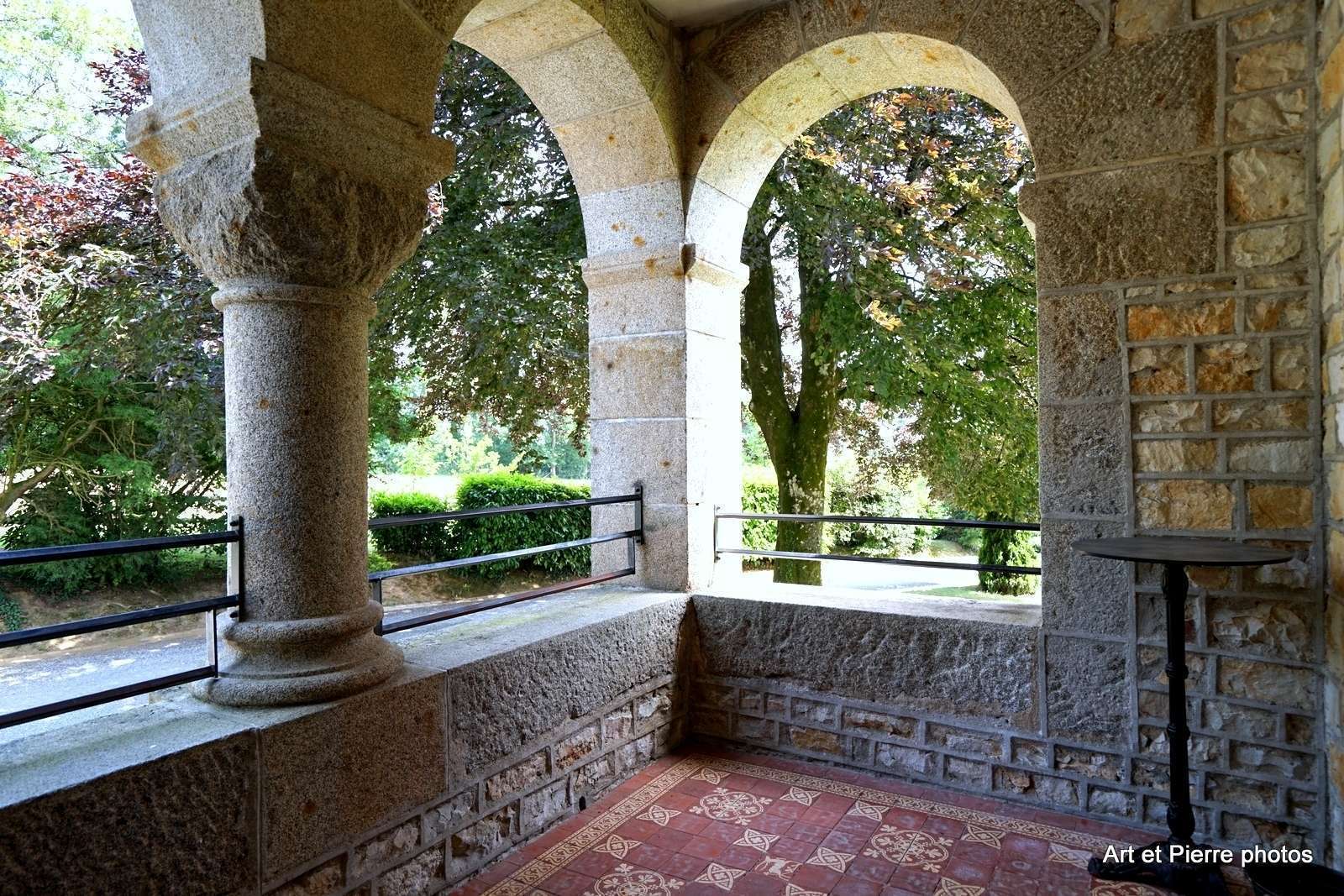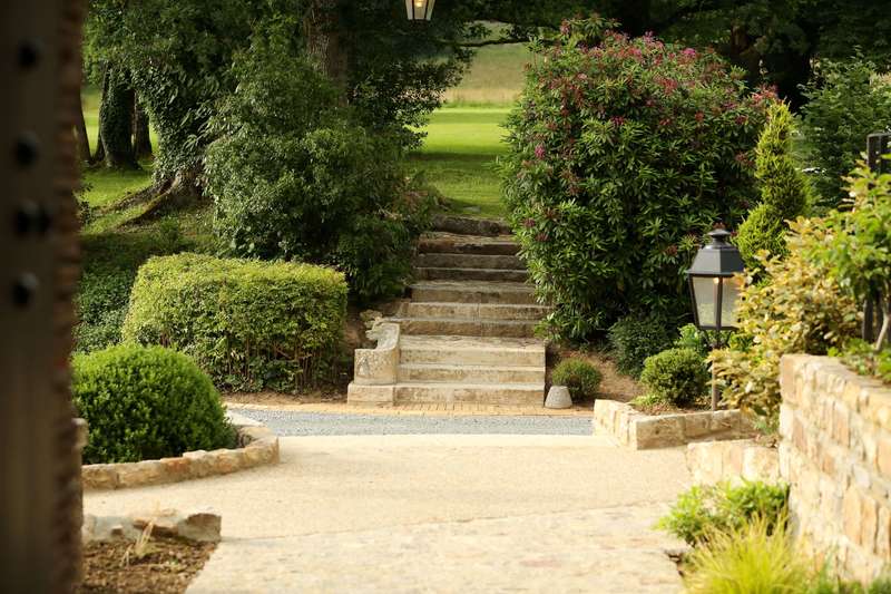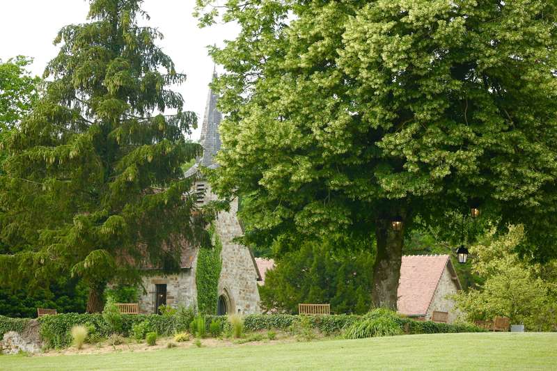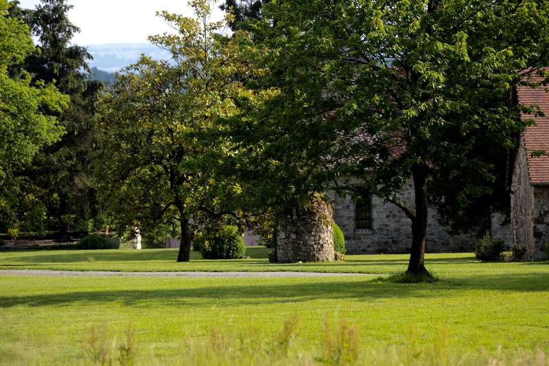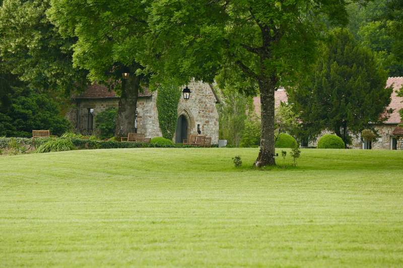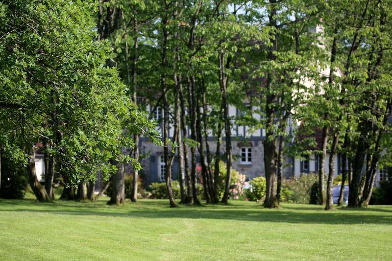Devant le manoir, une vaste terrasse s’étend à l’ombre bienveillante des arbres centenaires. Un peu plus loin, la cerisaie dévoile ses couleurs au fil des saisons, tandis que les abords de la chapelle des Béatitudes dégagent une atmosphère paisible et intimiste.